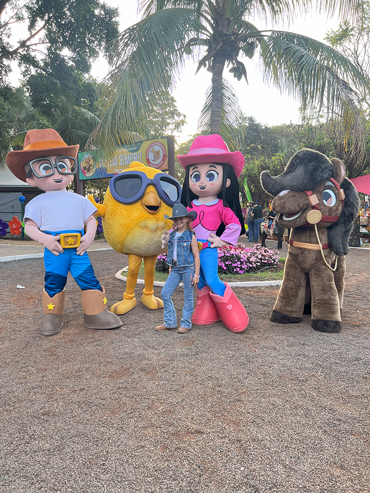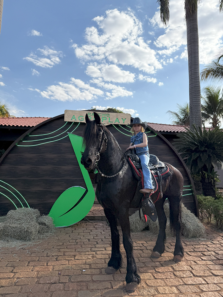 Durante a tarde, a integrante do Squad AgroPlay esteve nas gravações de conteúdos da Turma da Boiadeirinha e se divertiu explorando o espaço infantil: brincou no parquinho, visitou a Fazendinha e registrou os momentos ao lado da mãe, Ana Cláudia. Sua desenvoltura e carisma chamaram a atenção do público, reforçando sua espontaneidade diante das câmeras.