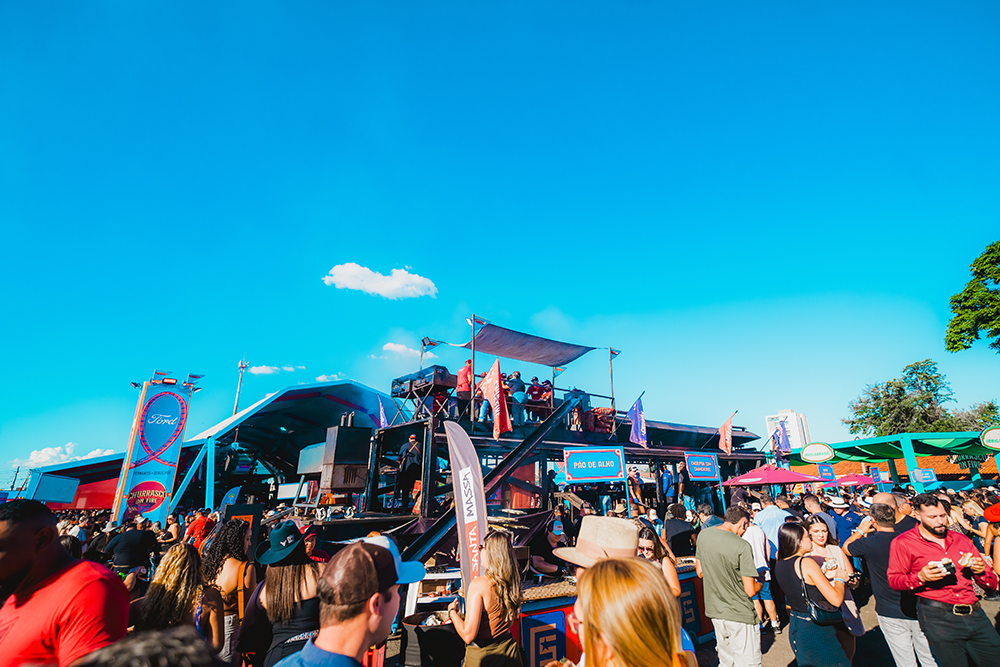 No centro da estrutura está a Máquina do Churrasco, carreta gourmet criada exclusivamente para o projeto. O espaço concentra parte importante da operação gastronômica e se tornou um dos símbolos do evento, reunindo diferentes estações de preparo, cortes especiais e interação direta com o público.