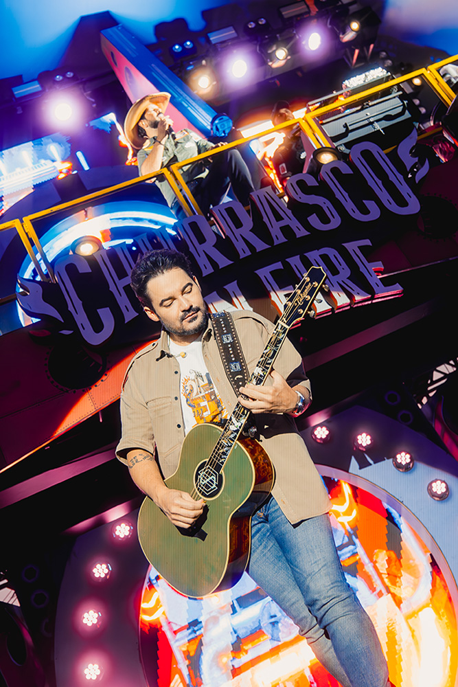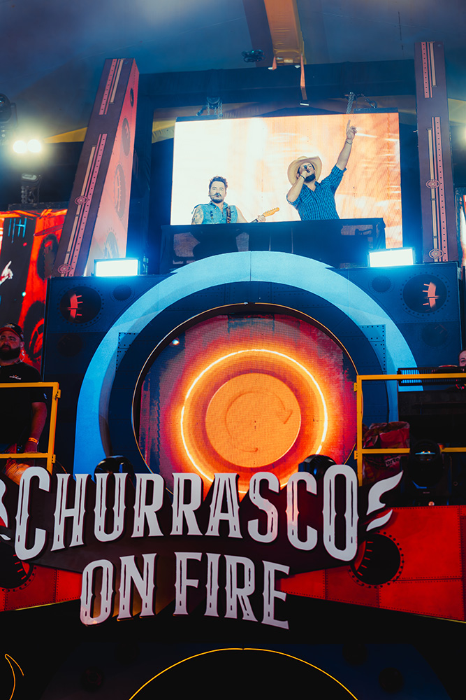 Fernando e Sorocaba apresentam um show de três horas com repertório exclusivo, pensado especialmente para o Churrasco On Fire. Doze módulos interconectados formam o palco que se transforma ao longo da apresentação, criando uma cenografia imersiva com mais de dez metros de altura. A direção criativa é de Sorocaba em parceria com a Camaleão Cenografia, Fernando assina produção musical e a Ross Produções a direção executiva.
