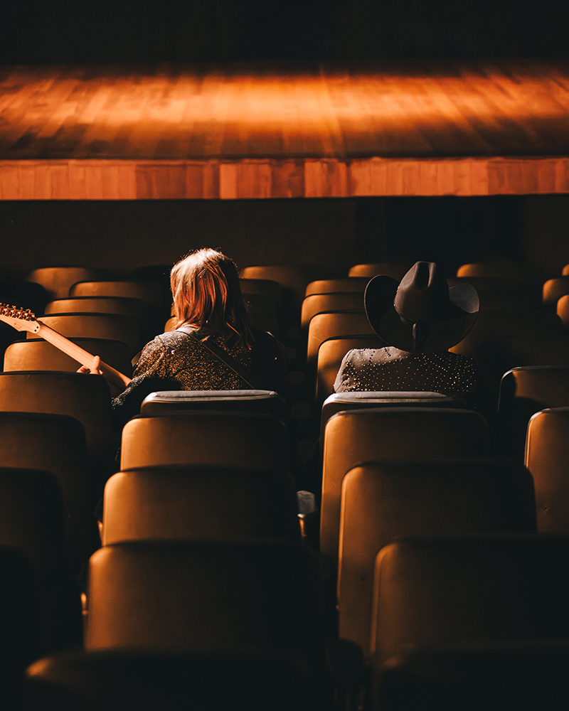 O videoclipe de “Carrie” potencializa essa atmosfera épica. Gravado no histórico Teatro Guarany, em Santos, com direção de Pedro Ferraro e direção criativa de Letícia Higa, o projeto transforma o espaço em parte essencial da narrativa. Inaugurado em dezembro de 1882, o Guarany foi o primeiro edifício construído para fins teatrais na cidade. Após ser destruído por um incêndio em 1981 — que preservou apenas suas paredes externas — foi reconstruído e reaberto em 2008, mantendo a fachada neoclássica original e incorporando um interior moderno.