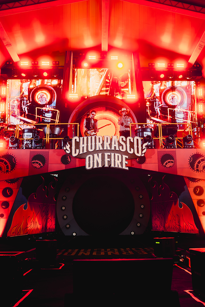 Fernando e Sorocaba apresentam um show de três horas com produção musical assinada por Fernando e repertório exclusivo, pensado especialmente para o Churrasco On Fire. A apresentação acontece no maior palco itinerante da América Latina, com 12 módulos interconectados espalhados pelo evento. A estrutura cenográfica, com mais de 10 metros de altura, se move e se transforma ao longo da apresentação, criando uma experiência imersiva inédita no país. O projeto tem direção criativa de Sorocaba e da Camaleão Cenografia e direção executiva da Ross Produções.