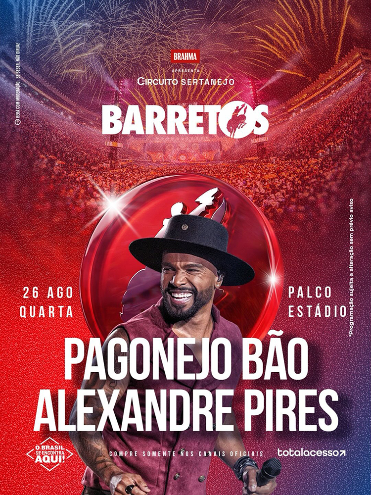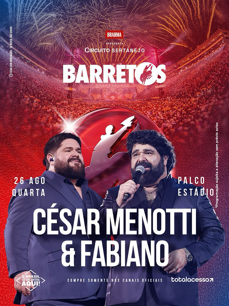 Mais sete grandes shows estão confirmados na 71ª edição da Festa do Peão de Barretos. Dando continuidade à divulgação da extensa grade musical do evento, a organização anunciou para o dia 26 de agosto, quarta-feira, a aclamada e tradicional dupla Cesar Menotti & Fabiano, a cantora Simone Mendes, que tem uma forte história com a Festa, e ainda o cantor Alexandre Pires, com a tour Pagonejo Bão, no Palco Estádio.