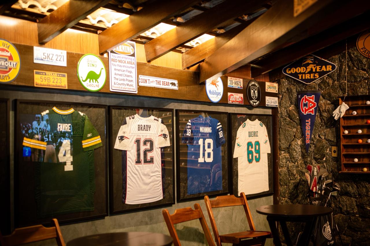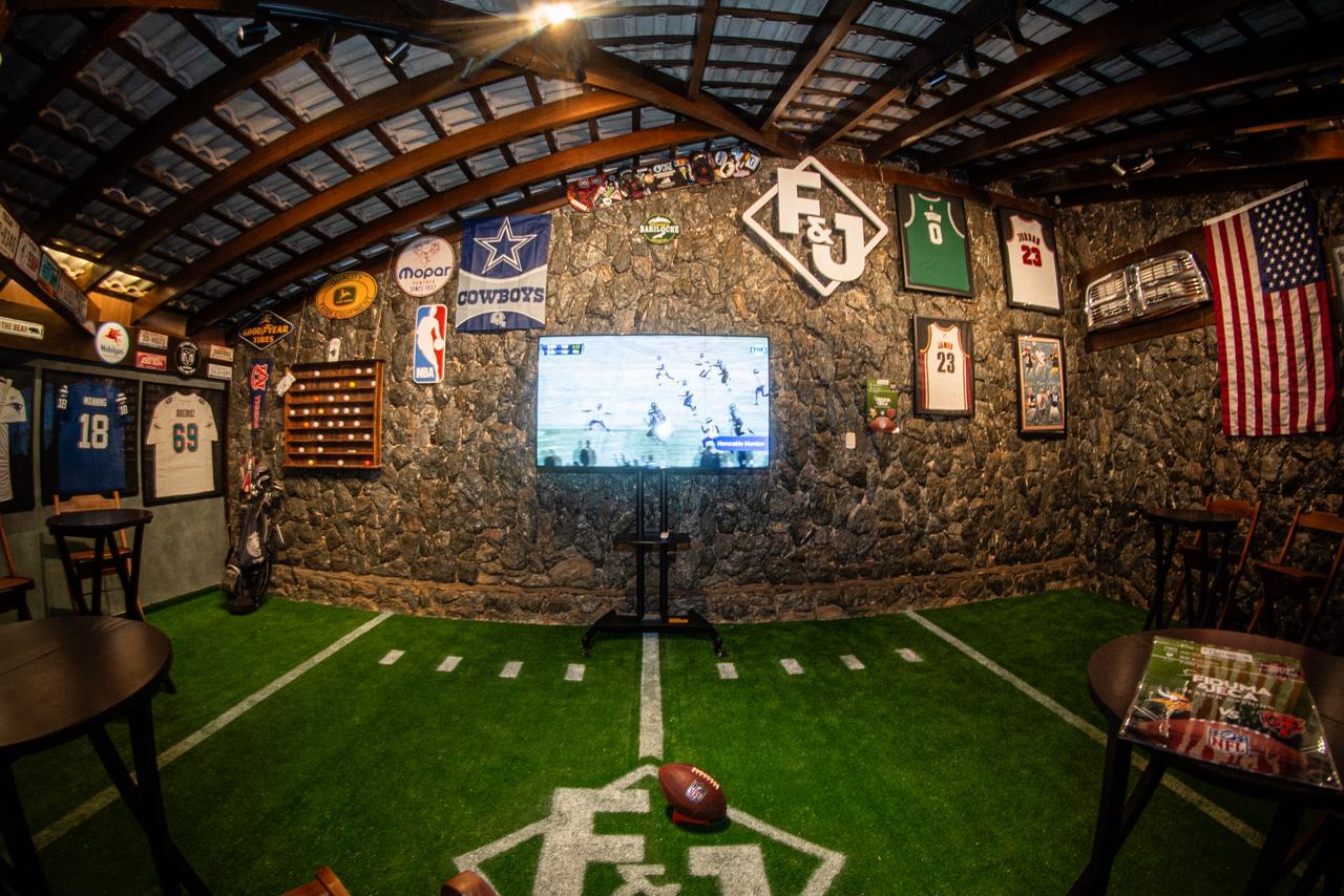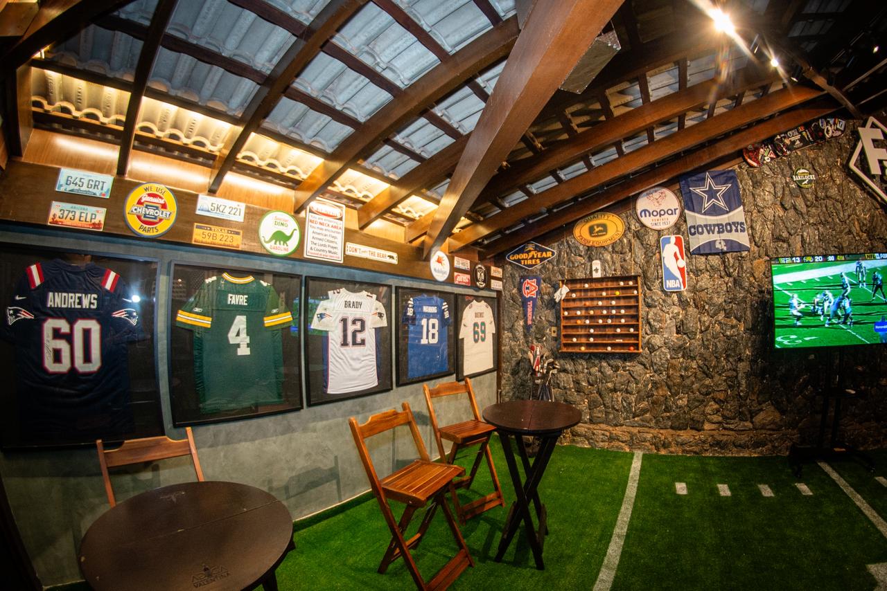 O estúdio da dupla conta com um espaço fixo totalmente dedicado à NFL, com decoração temática, camisas de times e até um chão que simula o gramado de um estádio — ambiente que se transformou em uma verdadeira arena de celebração para a season opening.
