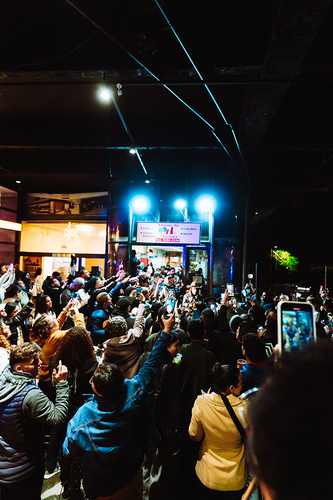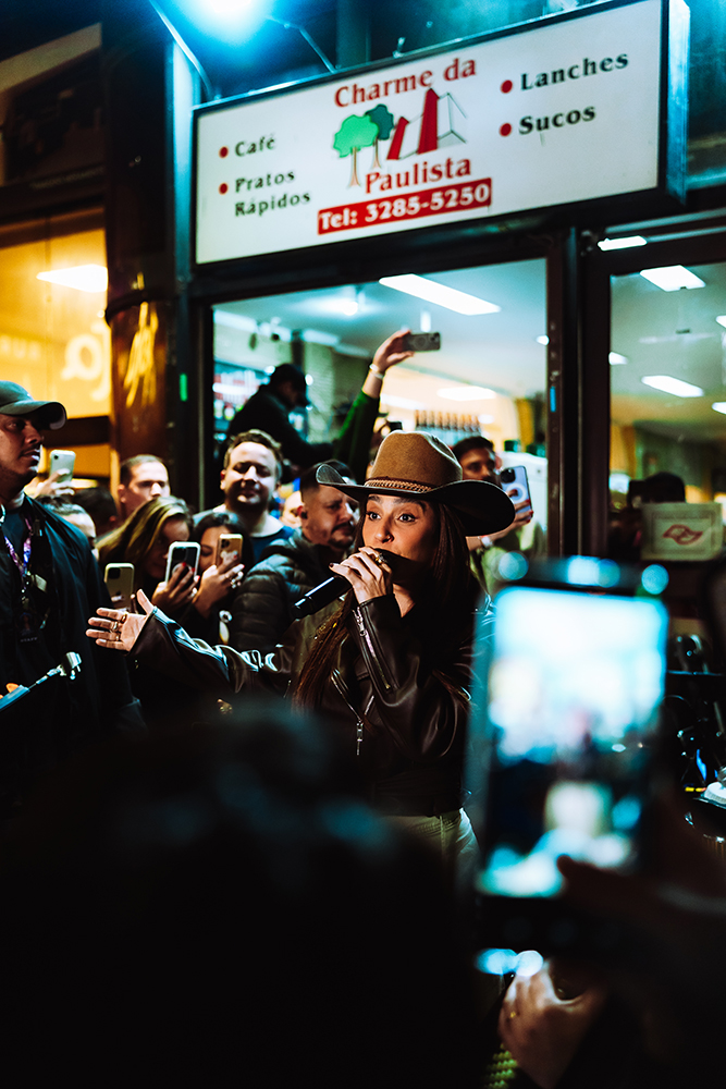 Em poucos minutos, centenas de pessoas se aglomeraram para acompanhar a performance. Em clima de proximidade, Lauana chamou ao palco fãs mirins que acompanhavam o show emocionadas e também um artista de rua que costuma se apresentar na região, dividindo com eles o microfone.