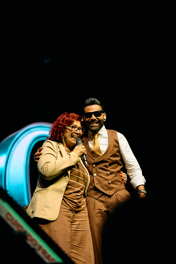 O show ganhou ainda mais emoção com a presença especial de sua família — o filho Vitor e a esposa Adriele — além de amigos queridos, como a cantora e compositora Fátima Leão e a empresária Sylvia Design, que prestigiaram o artista nesta noite única.