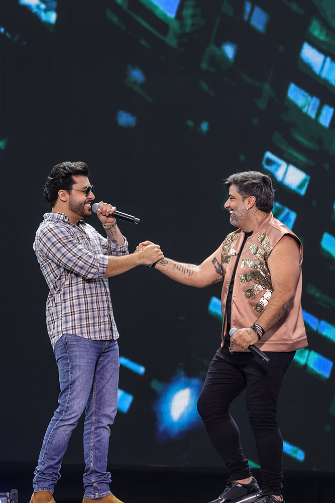 Nos bastidores, a emoção continuou. A dupla recebeu uma placa comemorativa de 4 bilhões de plays nas plataformas de áudio. A surpresa organizada pela gravadora e distribuidora OneRPM deixou o dia ainda mais especial.